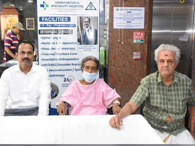 சென்னை, மடிப்பாக்கம்,உள்ளகரம் பகுதியில் உள்ள சிவம் மருத்துவமனை 82 வயது மூதாட்டிக்கு மிகவும் வெற்றிகரமாக இடுப்பு மாற்று அறுவை சிகிச்சையை செய்துள்ளது.இவர் கடந்த 6 மாதங்களாக இடது பக்க இடுப்பு பகுதியில் கடுமையான வலி காரணமாக நடக்க முடியாமல் அவதிப்பட்டு வந்தார்.இவரை பரிசோதித்ததில் இடுப்புப் பகுதி எலும்புகள் தேய்மானம் காரணமாக தொடைப் பகுதி வலுவிழந்திருப்பது கண்டறியப்பட்டது.